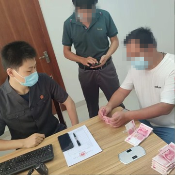在强制开锁前,潘某赶到了现场,承办法官随即对潘某实施强制拘传,并兵分两路,两名干警在现场进行物品清点,两名干警则将潘某带至法院。在强大的执行攻势面前,潘某最终当场通知其家属筹集现金269000元交至法院,并将余款通过转账支付完毕,至此,本案全部执行完毕。