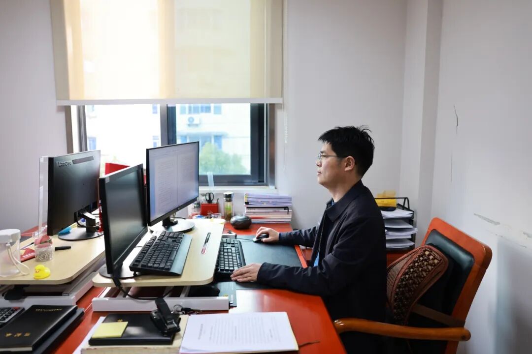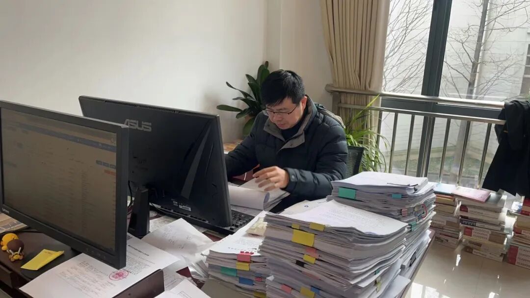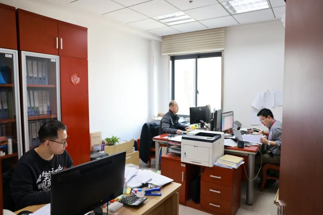 办公室内,法官、法官助理一丝不苟地阅卷、起草法律文书、组织调解,书记员开启新一年文书案卷整理工作。