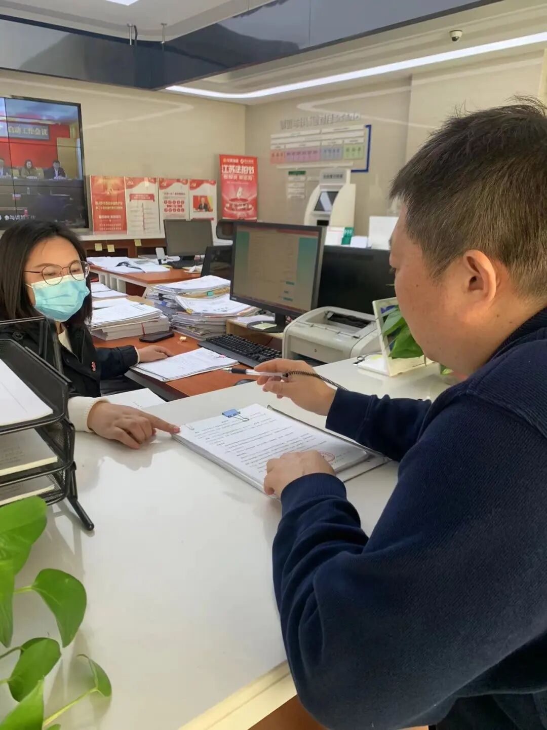 作为法院对外的第一窗口,立案庭负责全院各类案件的立案登记及立案审查、案件材料收转、诉前调解等。开工第一日,她们有的热情耐心接待办事群众,有的正在做调解前的准备工作,有的在检查案件材料。