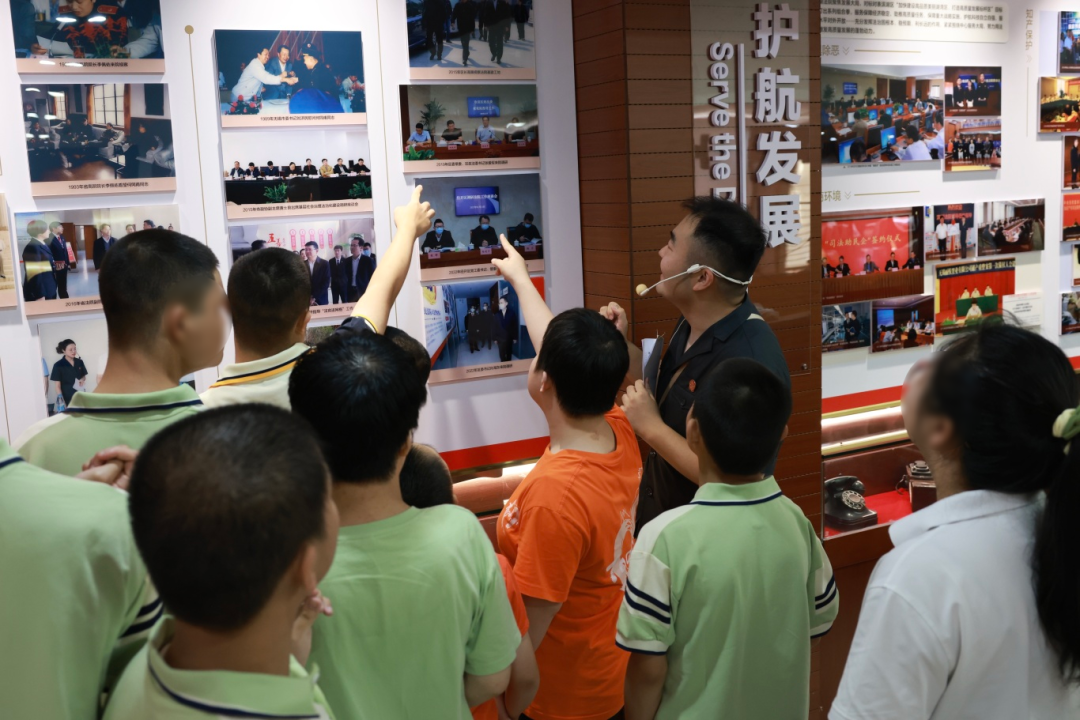 九点的晨光中,小朋友们来到滨湖法院开始了参观活动。在一声声“这是什么”“这是在干嘛”的询问声中,民一庭书记员吴一飞带领全体师生参观了滨湖法院院史馆,从建院历史到历年荣誉再到一件件老物件,小朋友们在光影与实物中感受司法的传承与庄严。