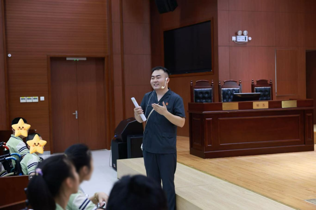 随后,刑庭法官助理宋胜利给小朋友们上了一堂生动精彩的“自我保护”课程,从面对霸凌怎么办到如何防拐防骗,通过通俗易懂的案例,告诉小朋友们如何更好的保护自己。